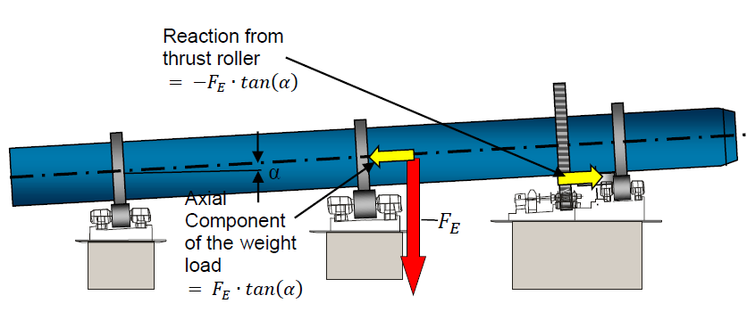 نیروهای محوری کوره بایستی توسط تراست رولر و نیز غلتک های کوره مهار شوند. سهم هر یک از این اجزا (تراست رولر و غلتک ها) در تحمل نیروهای محوری مشخص و تعریف شده می باشد. چنانچه به هر علتی (از جمله زاویه نامناسب غلتک ها) بالانس نیروهای محوری کوره از وضعیت نرمال خارج شود و میزان بالابر بودن و پایین بر بودن غلتک ها دستخوش تغییر شده باشد در اینصورت اعمال بار بیش از حد به یاتاقان های غلتک ها و تراست رولر دور از انتظار نخواهد بود. اعمال بار بیش از حد اثرات مخربی همچون افزایش دمای یاتاقان ها و خرابی و شکست اجزای داخلی یاتاقان و نیز خرابی بیرینگ تراست رولر و یا حتی شکست شفت تراست رولر را به دنبال خواهد داشت. کارشناسان ما با اندازه گیری زاویه و شیب غلتک ها و بررسی میزان فشار اعمال شده به تراست رولر، از بالانس بودن نیروهای محوری اطمینان حاصل خواهند نمود و در صورت صحیح نبودن بالانس این نیروها، میزان تغییرات لازم در زاویه و شیب غلتک ها را تعیین خواهند نمود تا تعادل نیروهای محوری به حالت بهینه خود بازگردد.
